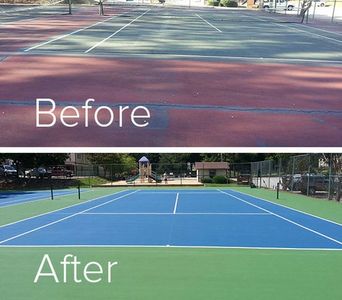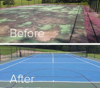 New asphalt or concrete is then installed with a new colored playing surface. The final product is a new tennis court which will provide the owner with many years of low maintenance play.