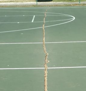 Standard court resurfacing will not prevent cracks from coming back. In many cases a hairline crack will return shortly after being resurfaced. Cracks create many smaller pieces of asphalt or concrete in the court surface that expand and contract separately with temperature & climate changes. This movement causes the cracks to reopen.