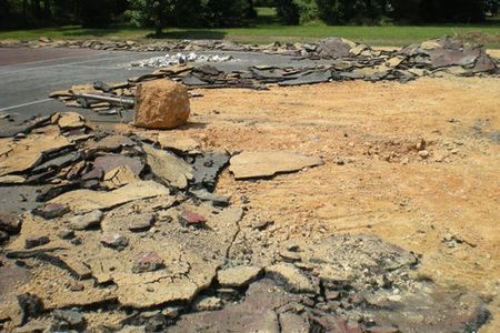 The first step in rebuilding a court is to remove the old asphalt or concrete slab. Fencing will be removed and reinstalled as needed (or replaced). Once the surface is removed, any subgrade or drainage issues can be addressed (roots, bad soil, subsurface water, etc.).